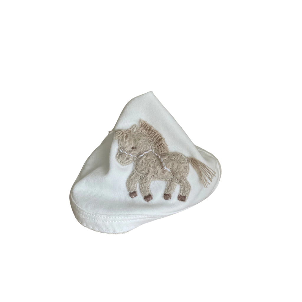 Descubrí la Babita confeccionada en interlock 100 % algodón, diseñada con un encantador caballo en tonos de marrón. Este accesorio no solo es hermoso, sino que también es práctico y cómodo, ideal para el día a día de tu bebé.