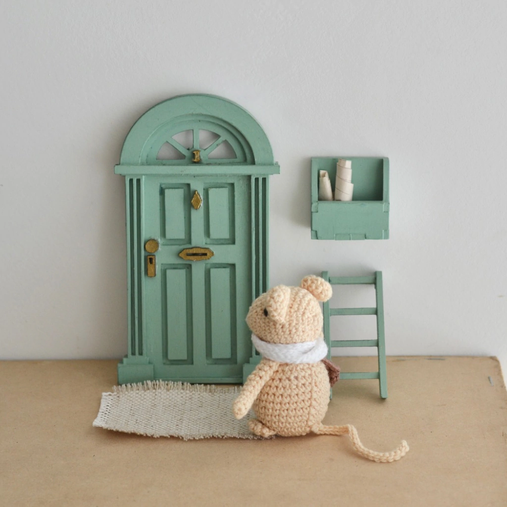 Descubrí La magia del Ratón Pérez, un encantador kit que incluye puertita, escalera y buzón, junto al ratoncito tejido al crochet en color tostado. Este pequeño ratón, con su mini carterita, es perfecto para guardar el dientito de tu hijo. Un detalle tierno y especial para acompañar momentos únicos. Ideal para regalar y sorprender con amor.