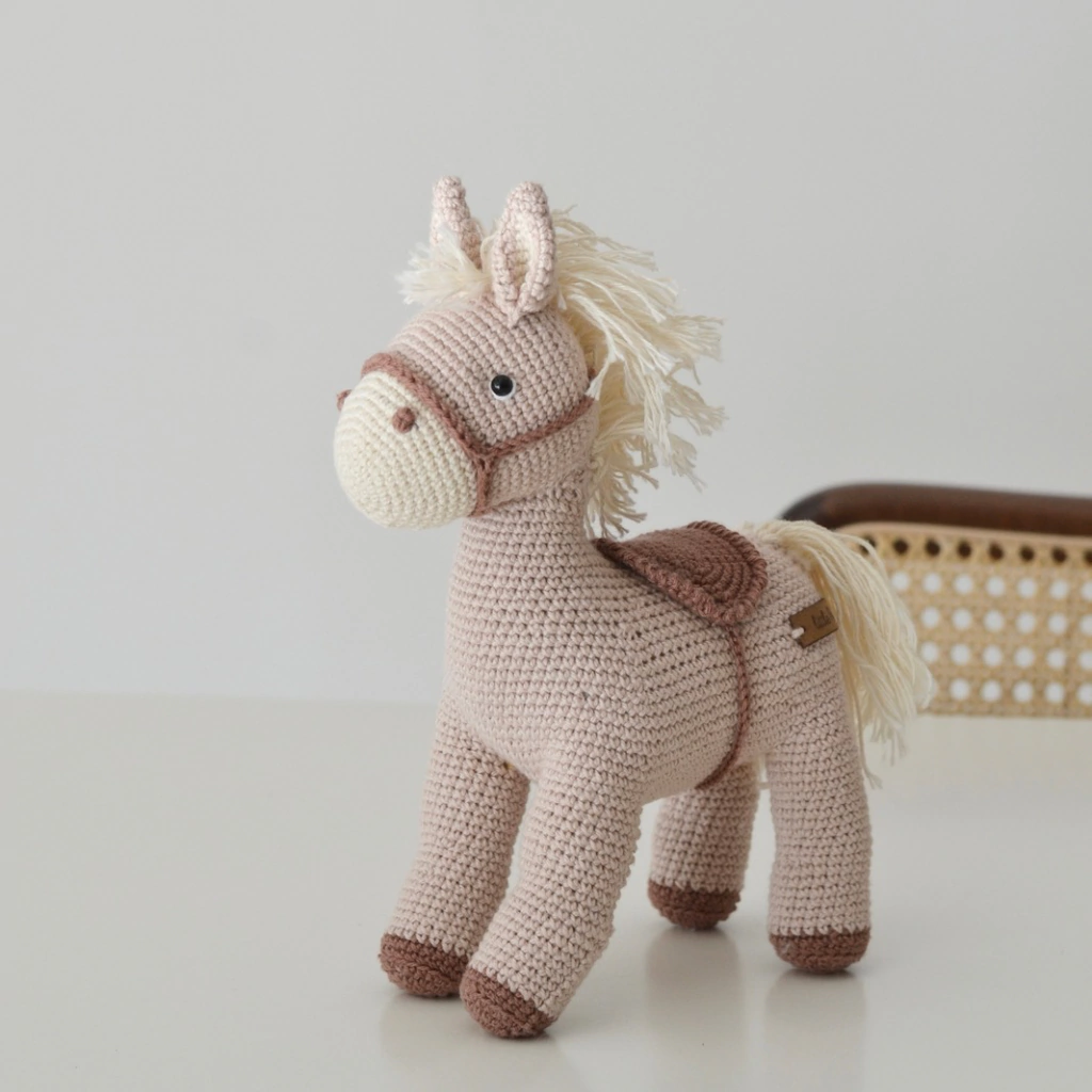 Conocé el caballito tejido, un adorable muñeco, en color marrón, perfecta para abrazar y jugar.