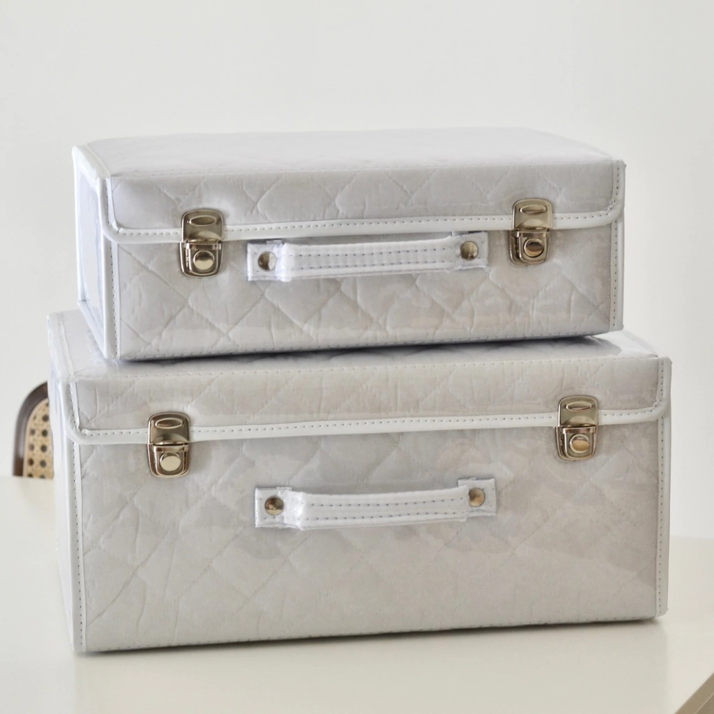 Valija con herrajes ideal para guardar y llevar a la clinica la ropa del bebé.